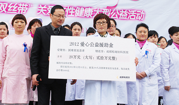 我院设立20万公益基金,支持由市、市妇联、市总公会、成都电视台主办的“幸福双丝带”大型公益活动。